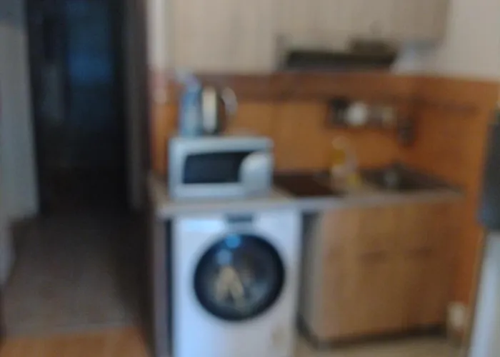 台所の設備の特色は冷蔵庫と洗濯機です. この40m^2のアパ-トはヴァルナ空港から0.5km離れています.